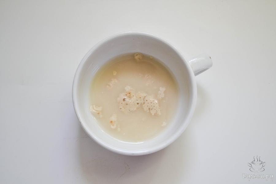 1. Прессованные дрожжи залейте теплой водой (100 мл) со щепоткой сахара и оставьте, чтобы распустились.
