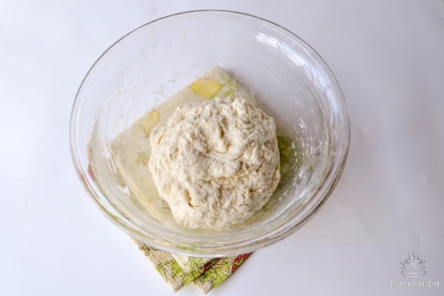 3. Затем руками замесите мягкое, но упругое тесто. Накройте миску, оставьте тесто на полчаса для отдыха.