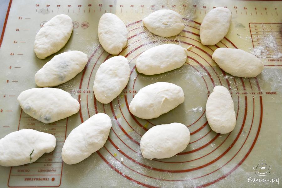 8. Приготовьте пирожки из всего теста и начинки. Я делаю пирожки маленькими - на 2-3 укуса. Вы же можете сделать размер пирожков по собственному желанию.
