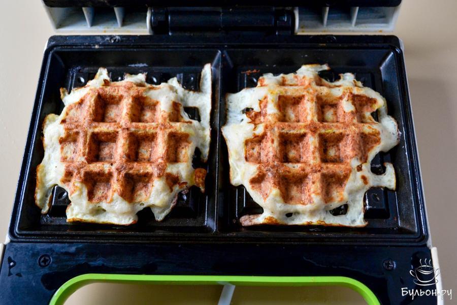 8. Выпекайте вафли до румяной корочки примерно 5-7 минут. время приготовления будет зависеть от мощности вашей электровафельницы. Испеченные вафли перекладывайте на решетку для остывания.