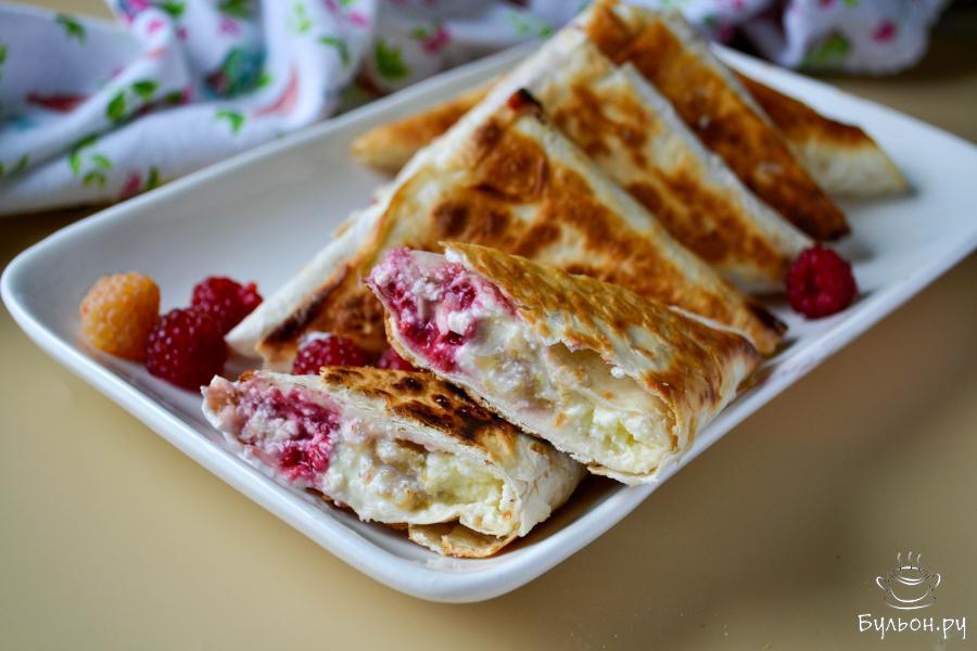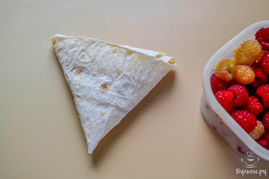 Тонкий лаваш дает возможность приготовить массу очень вкусных и полезных блюд со сладкой и не сладкой начинкой. Сегодня у меня треугольники из лаваша с творогом и малиной. Блюдо на "скорую руку", вкусное, сладкое и полезное. Поджаренный на сковороде лаваш получается хрустящий, очень вкусный. Начинка мягкая, сладкая. Треугольники вкусно подать со сметаной или сгущенным молоком - просто идеальный вариант для завтрака или перекуса в течение дня.