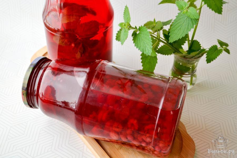 Очень вкусное сочетание ягод малины и красной смородины с мелиссой. Компот из этих ингредиентов получается невероятно ароматный, вкусный, сладкий. А цвет - просто потрясающий! Мелиссу можно заменить на мяту, будет также ароматно. Красная смородина придает легкую кислинку. А малина сладость и насыщенность вкуса. Как же приятно будет открыть зимой баночку такого компота! Количество ингредиентов дано на 3 банки по 1,5 литра.