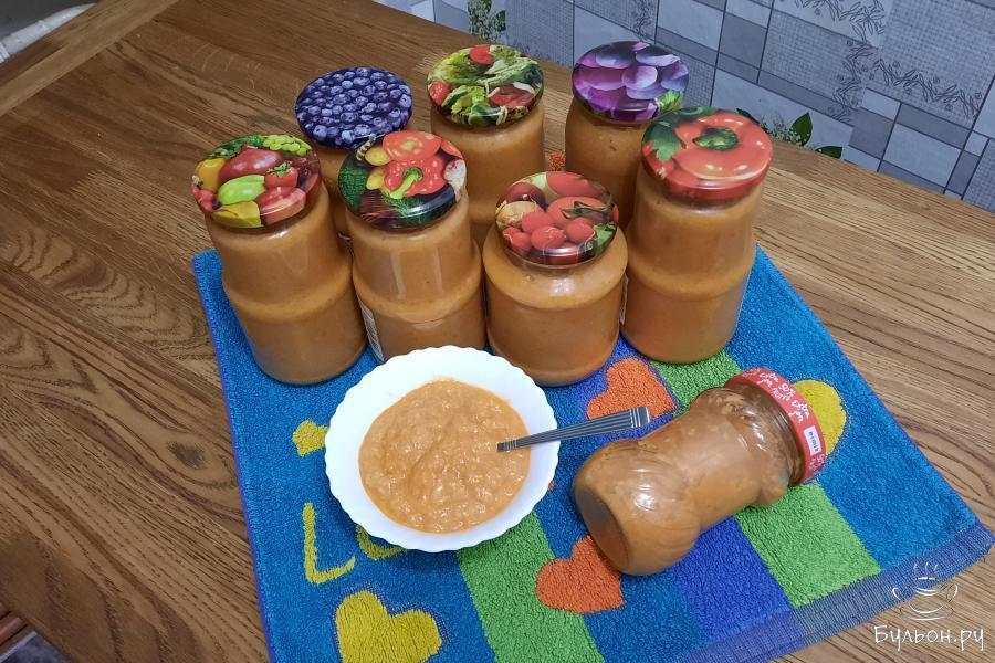 8. Горячую икру разложить по банкам и закрутить крышками. Укутать пледом и оставить до полного остывания. Всего получается 8 банок по 0,5 л. и еще немного для пробы. Приятного аппетита и удачных заготовок!