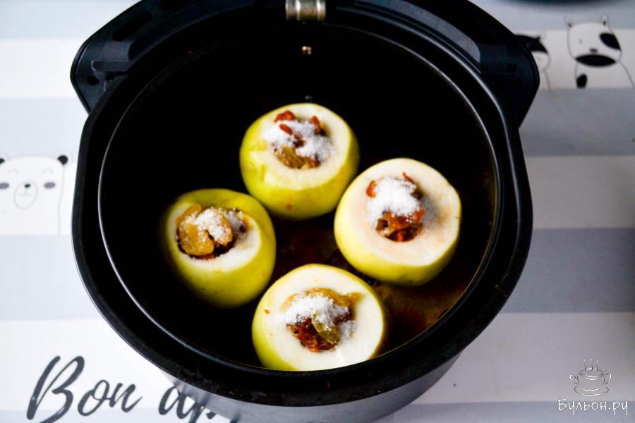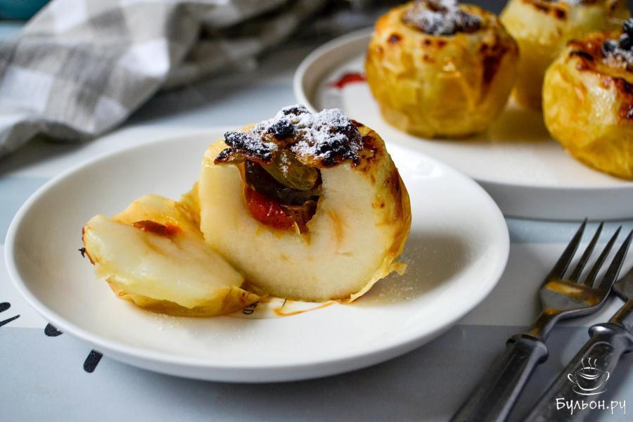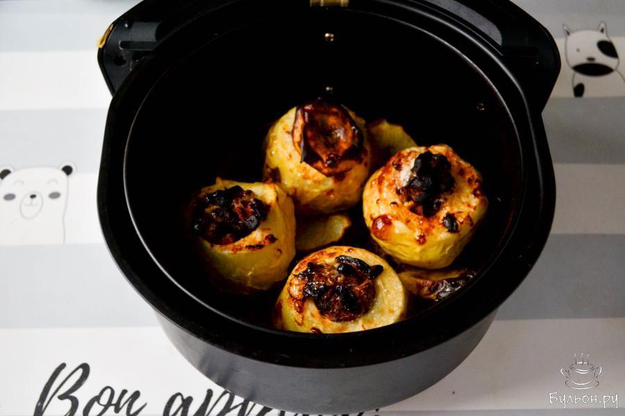 8. Достаньте запеченные яблоки из чаши аэрогриля и присыпьте сахарной пудрой по желанию. Приятного аппетита!