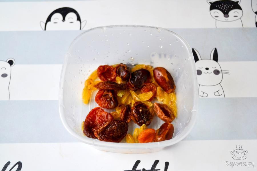 3. Изюм, финики и курагу вымойте. Если нужно, то залейте на 10 минут теплой водой, чтобы стали мягче.