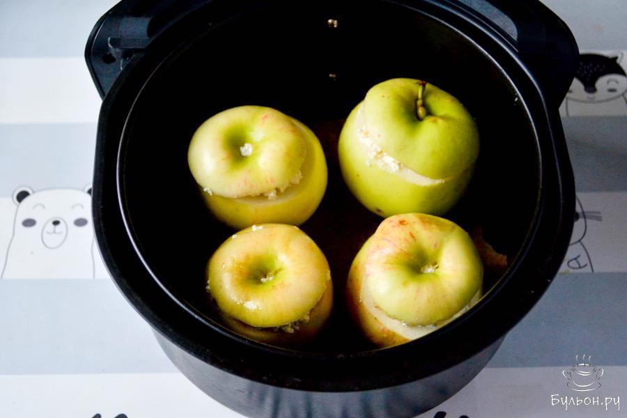 5. Через 10-13 минут проверьте яблоки. Если они уже мягкие, то можно отключить аэрогриль. А если твердые, то продолжайте запекать еще 2-3 минуты.