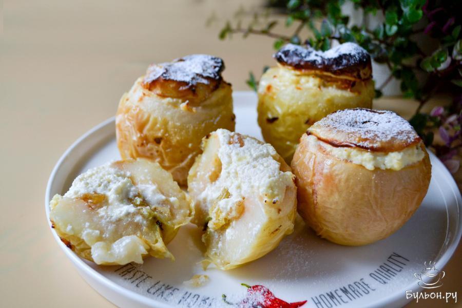 Очень вкусный и полезный десерт - яблоки запеченные с творогом и изюмом. Яблоки можно запечь в духовке, микроволновке, мультиварке, а если есть аэрогриль, то лучше в нем. Яблоки будут готовы за 15 минут. Творог и изюм хорошо сочетаются по вкусу, а вместе с яблоками получается настоящее лакомство. Сахар кладите по вкусу и в зависимости от сладости яблок. Яблоки лучше взять средней жесткости. Мягкие смогут "развалиться" во время запекания, а слишком твердые будут готовится дольше.
