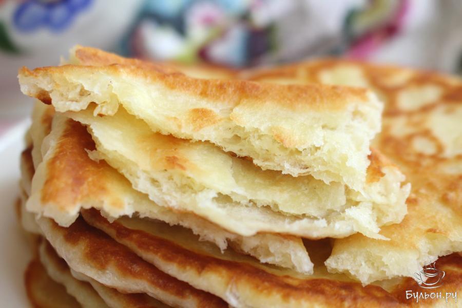 Эти дрожжевые лепешки без яиц на сковороде получаются просто невероятно вкусные! Тут используются самые доступные и простые ингредиенты, а результат вас порадует. Лепешки будут пышные, мягкие, нежнейшие, они легкие как пух. Если вы любите пышки и жареные лепешки, то смело готовьте сразу двойную-тройную порцию, так как эти лепешки съедаются мгновенно. Такие лепешки можно подать с любимым сладким дополнением, а можно предложить эти лепешки вместо хлеба.