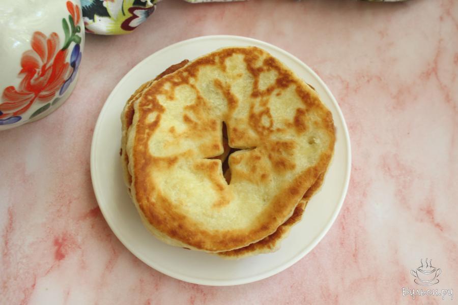 10. Перед каждой новой лепешкой добавлять понемногу масла на сковороду. Таким образом приготовить все лепешки.