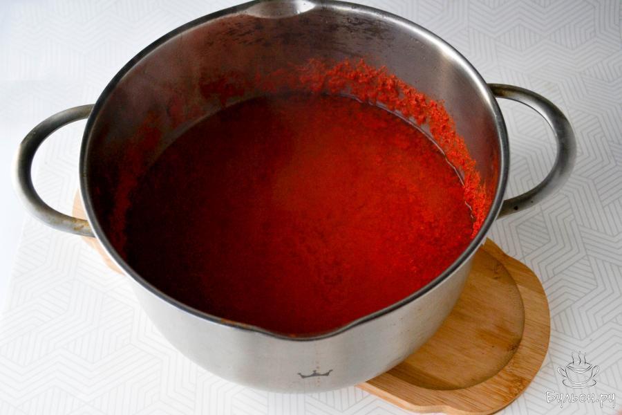 2. Перелейте томатный сок в кастрюлю, поставьте на огонь, доведите до кипения, уменьшите огонь и варите в течение 15-20 минут.