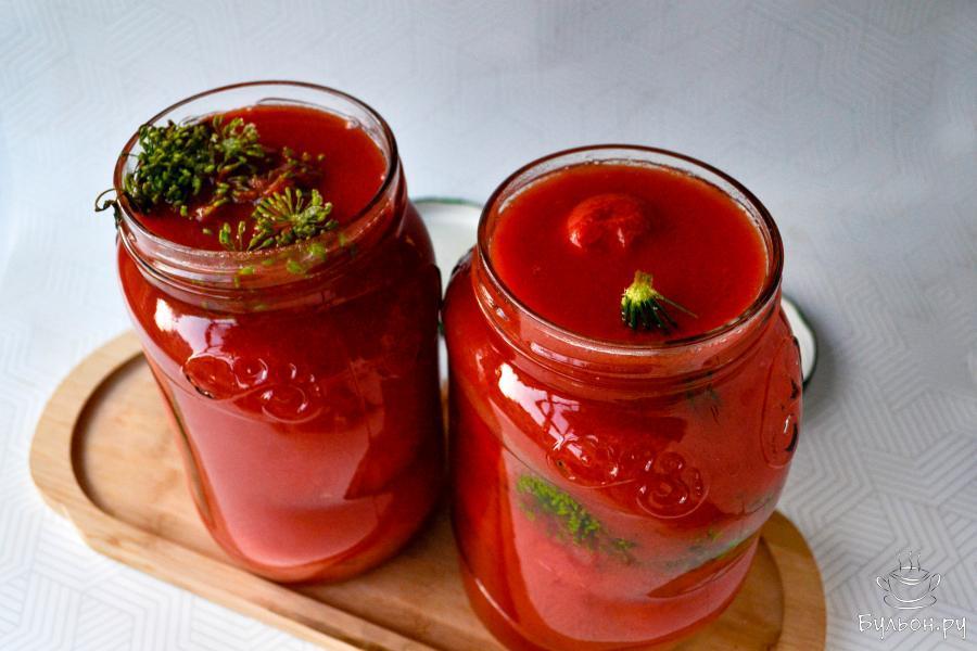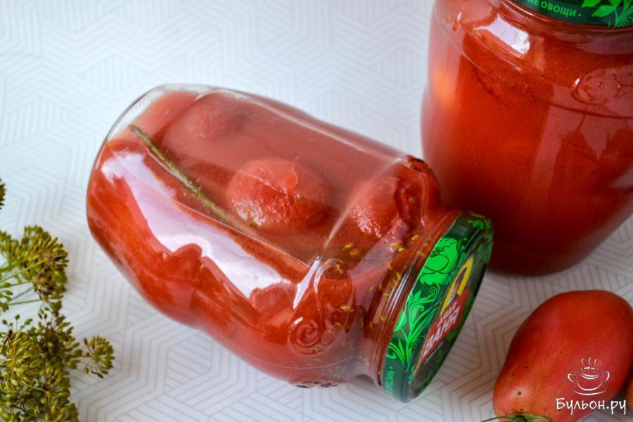 Сезон заготовок продолжается. Предлагаю приготовить невероятно вкусные помидоры в томатной заливке. Для заливки можно взять любые помидоры. А помидоры, которые будут заливаться томатным соком, лучше взять небольшого размера, плотные, крепкие. По желанию, в заливку можно положить чеснок, черный перец горошек, гвоздику, базилик - любые специи, которые вы обычно используете для маринования томатов. Это замечательная заготовка, в ней вкусно все: и заливка, и помидоры. Расход дан на 3-х л. банку.
