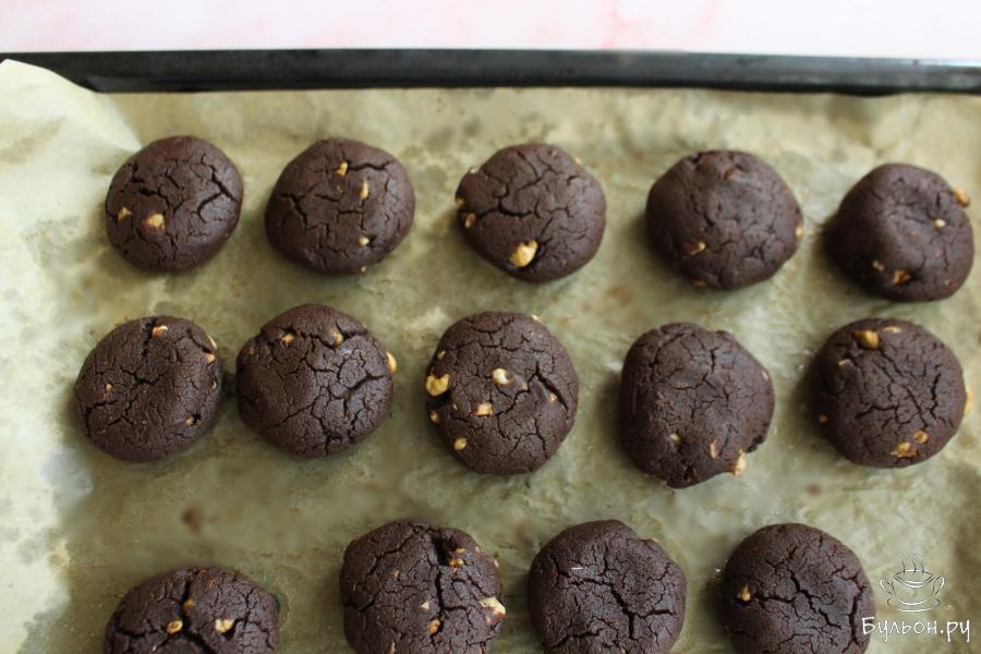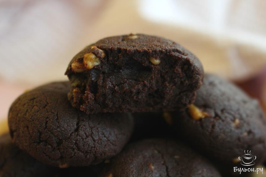 Шоколадное печенье из гречневой муки с орехами, будет готово у вас за 15 минут. Это печенье напоминает выпечку брауни, где серединка пирога остается полужидкая. Тут печенье небольшое и чтобы серединка оставалась полужидкая, выпекать печенье нужно всего три минуты. Если же вы любите классическое рассыпчатое печенье, то выпекайте его минут 10-12. Такое печенье можно приготовить из ржаной муки. Дополнительно в тесто можно добавить вяленые ягоды. Или вместо орехов можно использовать вяленые ягоды. Печенье получается мягкое, вкусное, ароматное, с легкой горчинкой.