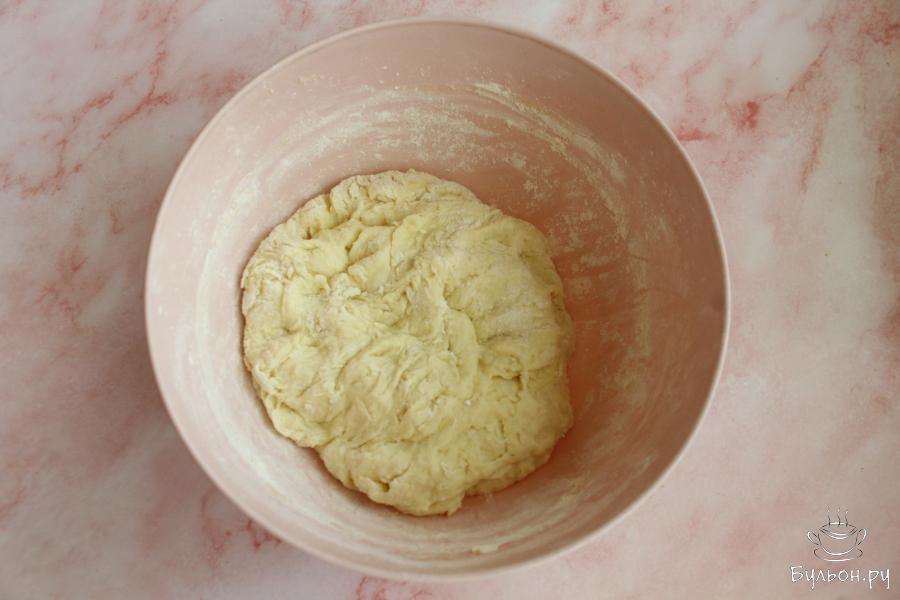 5. Добавить муку и замесить мягкое тесто. Тесто может немного липнуть, муки больше не добавлять. Оставить чашку в тепле на час.