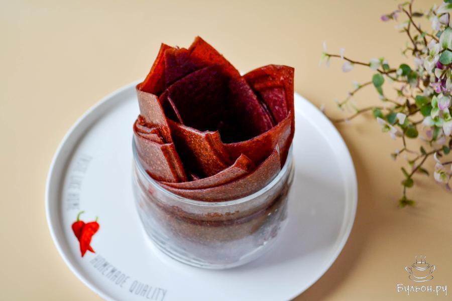 9. Пастилу можно нарезать на кусочки, а можно на полосочки, которые свернуть в рулетики. Приятного аппетита! Храните пастилу в стеклянной, закрытой посуде в прохладном месте.