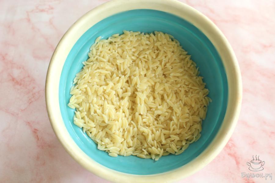 7. Макароны орзо сварить до готовности руководствуясь инструкцией на упаковке. Откинуть макароны на дуршлаг.