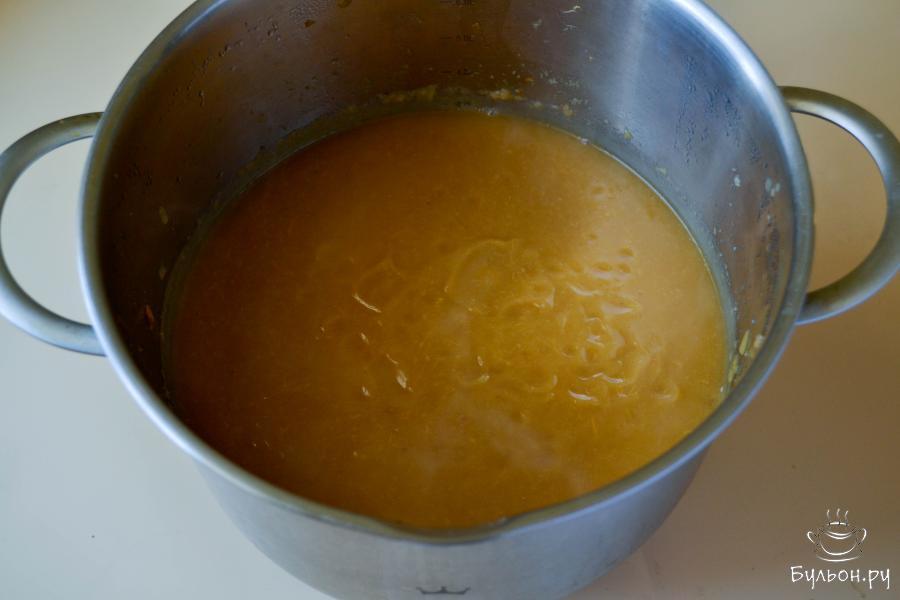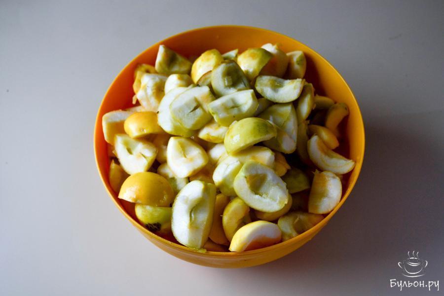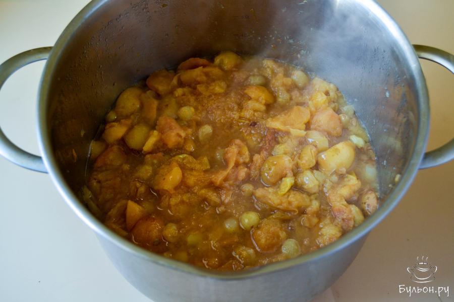 5. Спустя указанное время поставьте кастрюлю на тихий огонь. Постепенно доведите до кипения, помешивая, затем проварите на среднем огне до мягкости фруктов примерно 30 минут.