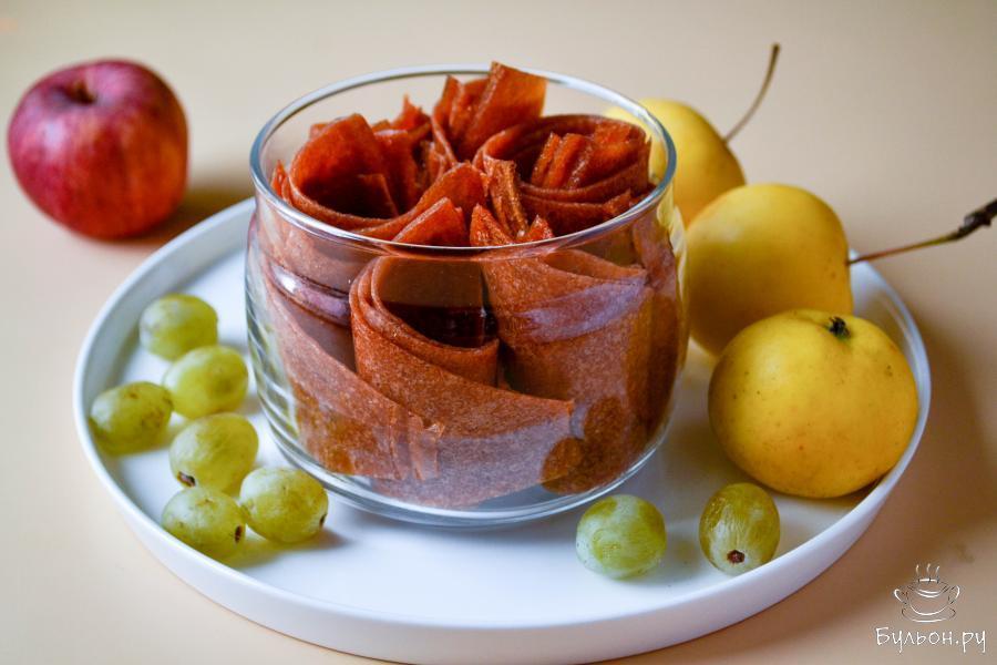 Невероятно вкусная и полезная сладость - пастила из яблок и винограда. Если у вас есть эта замечательная помощница - электросушилка, приготовьте пастилу! Пастилу можно сделать без добавления сахара, если яблоки сладкие. Но с сахаром пастила получается более эластичная. Виноград подойдет любой - зеленый, черный, красный. Главное, чтобы он был без косточек. Приготовление пастилы - это как любовь с первого взгляда. Если первый результат понравился, то, уверена, на одной порции не остановитесь. Тем более, что съедается пастила очень быстро.