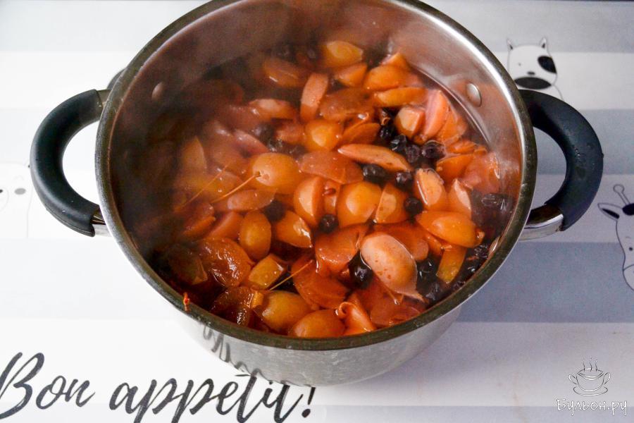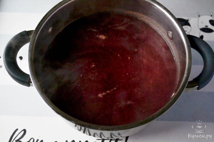 6. Крахмал растворите в кипяченой холодной воде и влейте в кипящий отвар. Сразу же перемешайте, чтобы кисель не получился комочками.