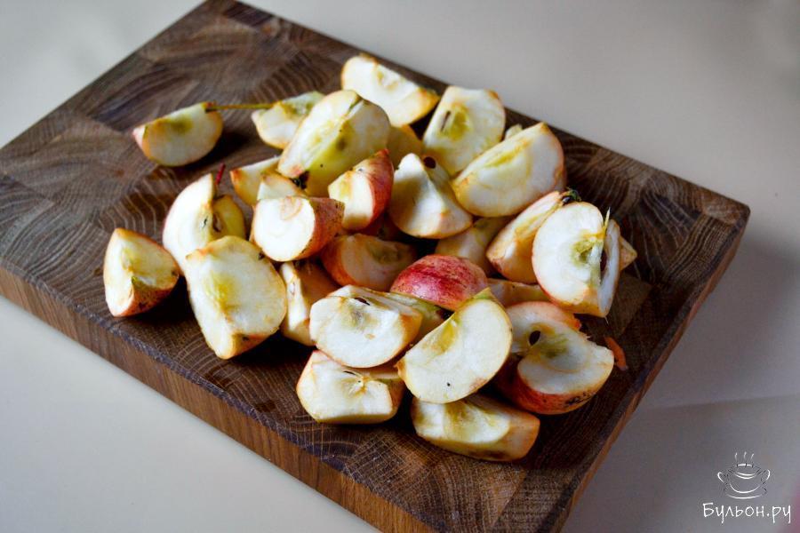 2. Яблоки вымойте, разрежьте на 4 или 8 частей, в зависимости от размера. Семенную камеру можно не вырезать.