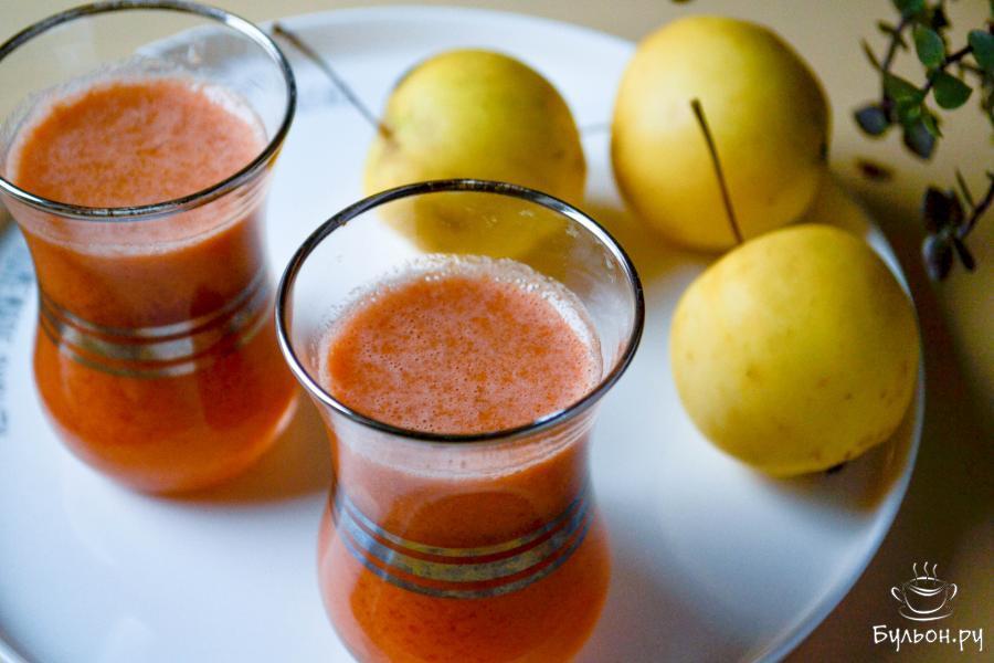 Сок из яблок и моркови лучше всего готовить осенью, после сбора моркови. Осенью она самая сочная, самая вкусная. Идеально, если морковь будет с собственного участка. В этом случае можно быть уверенным на все 100 процентов, что корнеплод выращен чистый, без химии. Яблоки тоже желательно со своего сада. Соотношение моркови и яблок возьмите по желанию. Я взяла 50 на 50. Сок яблочно-морковный нужно подавать сразу поле приготовления. Хранить такой полезный напиток не стоит.