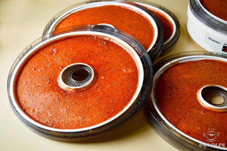 6. Поставьте поддоны на электросушилку. Включите прибор и сушите пюре до состояния пастилы. Во время сушки меняйте верхние поддоны с нижними местами, чтобы просохли быстрее.
