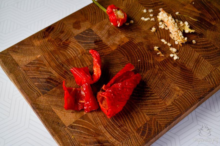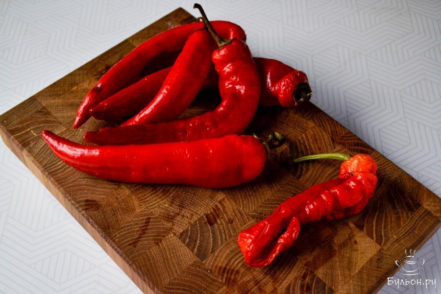 2. Сладкий перец разрежьте, удалите семена. Острый перец по желанию можете использовать целиком с семенами. А можете также разрезать и убрать семена.