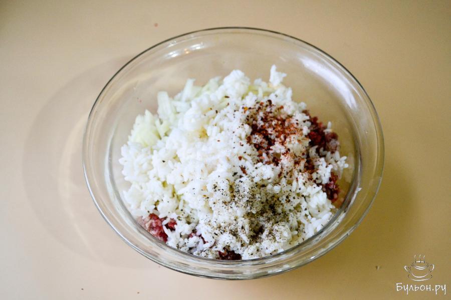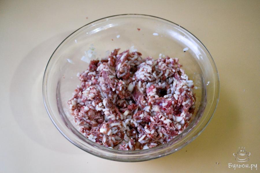 Домашние заготовки очень выручают, когда нужно что-то по быстрому приготовить и накормить семью. Пельмени, вареники, тефтели, котлеты, фаршированные перцы - это не полный перечень заготовок. Я очень люблю голубцы, поэтому делаю их сразу много, замораживаю и в любой момент готовлю это вкусное, мясное блюдо. Фарш использую говяжий. Можно взять смесь из двух видов фарша. Рис предварительно отвариваю до полуготовности. Добавляю много репчатого лука и соль. Из специй только черный молотый перец.