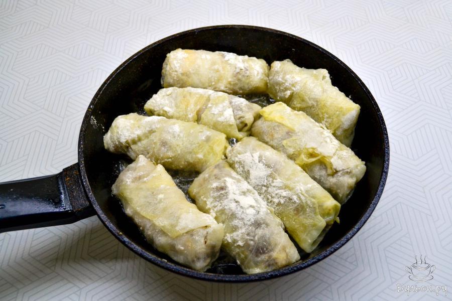 11. Для приготовления обкатайте заготовки в муке, излишки муки стряхните и положите на разогретую с растительным маслом сковороду.