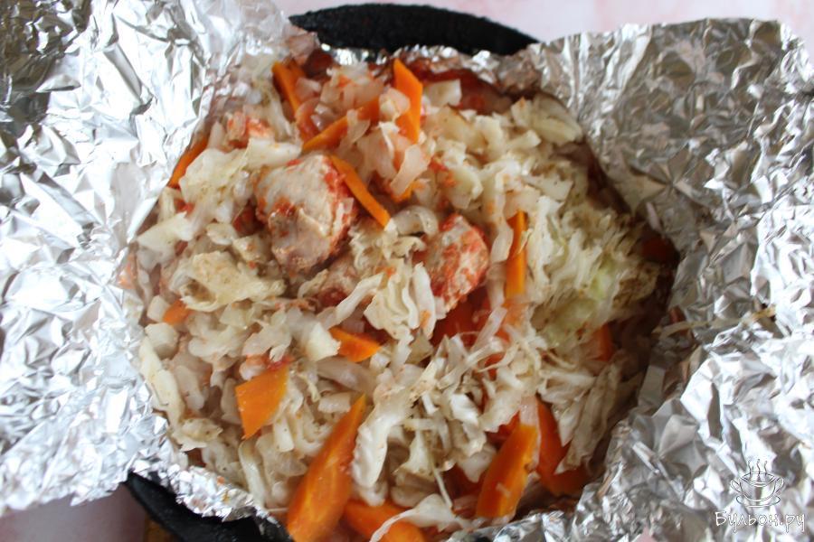 Это блюдо хорошо тем, что не надо стоять у плиты, помешивать и следить за приготовлением. Тут тушеная капуста будет запекаться в духовке. Для приготовления можно взять и другие части тушки, это по вашему усмотрению. Количество овощей можно менять и добавить больше лука или моркови. Тушеная капуста с курицей в фольге в духовке готовится очень просто. Это блюдо можно готовить полностью в фольге, а можно выложить все ингредиенты в форму для запекания и накрыть форму фольгой или крышкой.