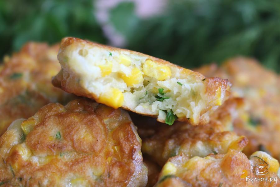 Оладьи из свежей кукурузы с зеленью, вкусные как в горячем, так и в холодном виде. Готовить такие оладьи быстро и просто. Оладьи получаются пышные, мягкие, необычные и очень вкусные. Если вы любите блюда из кукурузы, то эти оладьи вам понравятся. Зелень для приготовления выбирайте по вкусу. Можно добавить в тесто мелко нарезанный зеленый лук, а можно даже приготовить оладьи совсем без зелени, тоже будет вкусно. Вес кукурузных зерен с початков может быть разный, достаточно будет добавить 100-150 грамм кукурузы.