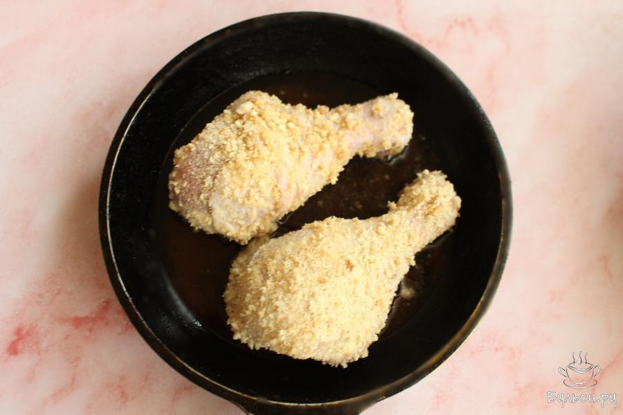 5. На сковороде разогреть масло и обжаривать голени на небольшом огне до румяности со всех сторон. Сковороду можно накрыть крышкой.