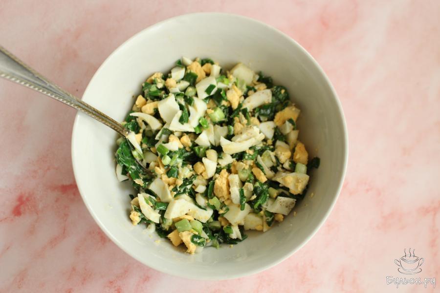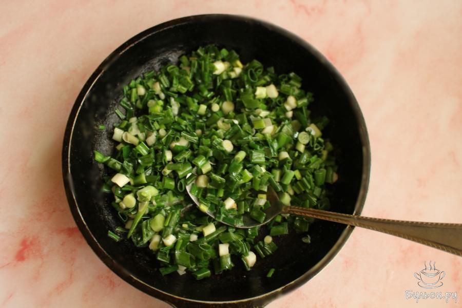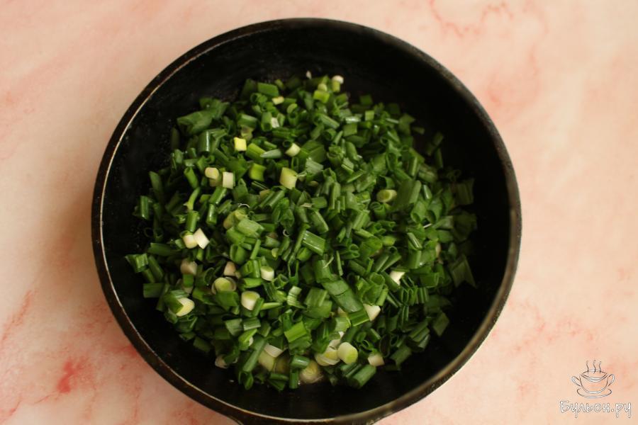 Обычно начинку для пирожков готовят из свежего сырого лука, его просто нарезают или немного мнут лук мялкой, чтобы он не сильно рассыпался при лепке пирожков. Еще я обычно добавляю кусочек сливочного масла в каждый пирожок с зеленым луком и яйцом. Начинка из зеленого лука и яиц на сливочном масле очень удобная в лепке, лук не рассыпается, он потеряет объем и будет хорошо ложится на тесто, а сливочное масло будет уже в начинке. Начинка готовится очень быстро и получается она вкусная, нежная, ароматная. Такую начинку можно готовить на топленом масле.