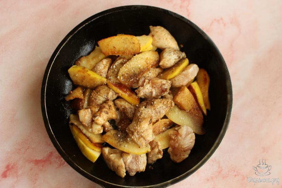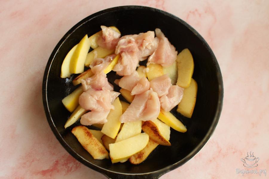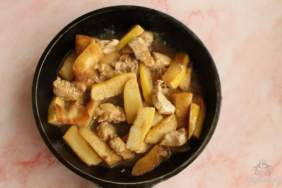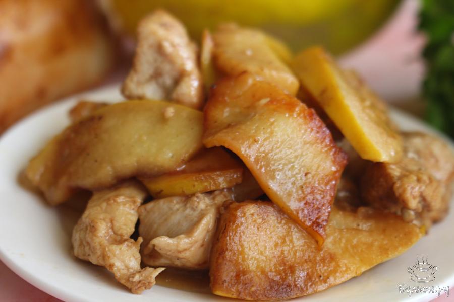 Если вы любите легкие блюда из куриного мяса, если вам нравится добавление фруктов во вторые блюда, то этот рецепт может вас заинтересовать. Куриная грудка с айвой на сковороде получается сочная, вкусная, необычная и насыщенная. Готовится такое блюдо очень быстро, через полчаса вам будет что подать к столу. Айва добавляет тушеному куриному мясу пикантный вкус. Блюдо можно подать так, а можно дополнить гарниром.