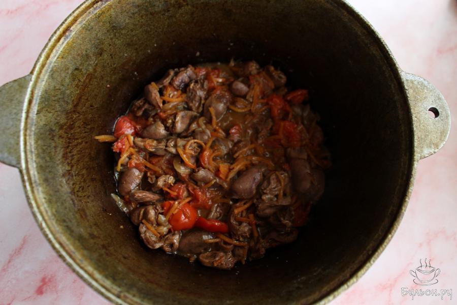 Куриные сердечки с овощами и соевым соусом в казане получаются мягкие, вкусные, сочные и ароматные. Такие тушены сердечки с овощами можно подать как самостоятельное блюдо, а можно дополнить любым, любимым гарниром. Тушеные сердечки вкусные как в горячем, так и в остывшем виде. Если вы любите чеснок, зелень, то за пару минут до готовности добавьте в казан, продавленный через пресс, чеснок и мелко нарезанную зелень по вкусу. Перемешайте блюдо и готовьте дальше.