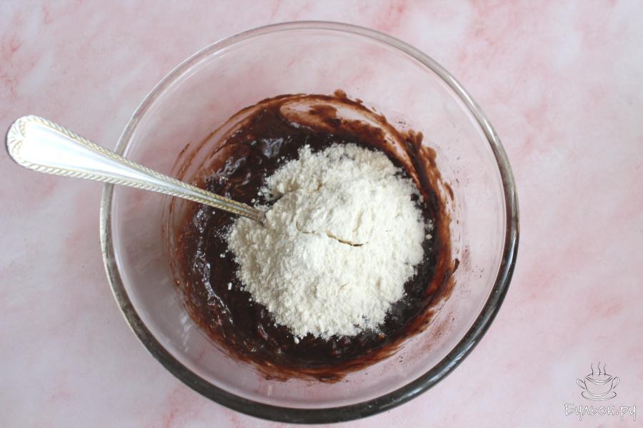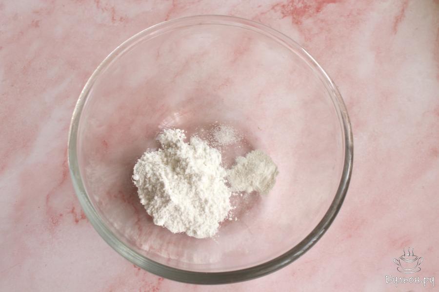 5. Всыпать в чашку муку и замесить мягкое тесто. Разделить тесто на несколько частей и убрать в холодильник на час.