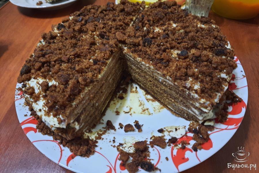 13. Так как я приготовила 2 торта, то второй торт решила посыпать блинной крошкой (из одного блина сделала крошку). Приятного аппетита!