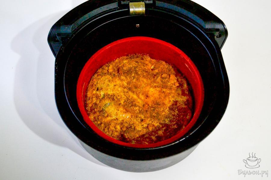 6. Форму поместите в чашу аэрогриля. Установите температуру 180С, время приготовления 25-30 минут, так как мощность приборов у всех разная.