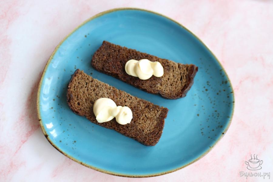 2. Два ломтика хлеба обжарить с двух сторон на сковороде с разогретым маслом. Обжаривать хлеб до нужной румяности.