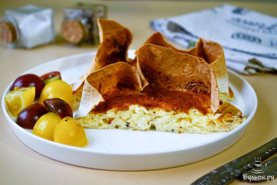 Если вы готовите на завтрак блюда из яиц, приготовьте омлет с сыром в лаваше. Кстати, не обязательно готовить омлет в аэрогриле, прекрасно подойдет и духовка. Нежный омлет, в сочетании с расплавленным сыром и хрустящим запеченным лавашом, придется по вкусу многим. Запеченный омлет, поданный в лаваше, очень похож на омлет в своеобразной тарелочке. Сыр можно взять любой твердый, типа Российского, или же взять Моцареллу, главное, чтобы сыр хорошо плавился. В омлет, кроме сыра, можно добавить мелко нарезанную колбасу, вареное мясо или курицу - это придаст омлету сытность и вкус.