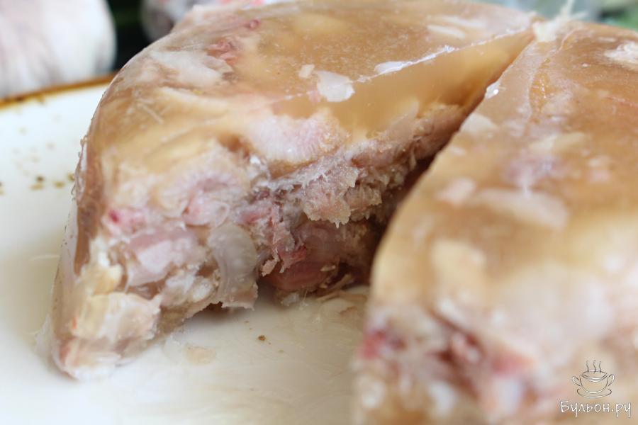 Домашний холодец из свиных ножек и рульки порадует вас своим вкусом. Холодец получается насыщенный, ароматный, аппетитный и упругий. Готовить холодец не быстро, но результат стоит труда. Количество чеснока, пряностей можно увеличить или наоборот уменьшить. Кому-то достаточно всего 2-3 зубчика чеснока на такое количество холодца. Лишний жир можно убрать из горячего бульона или убрать жир с уже застывшего холодца. Сделайте как вам привычно. С горячего бульона жир можно снять бумажным полотенцем. Холодец можно варить шесть часов, но если вы не торопитесь, то варите часов восемь, будет насыщеннее.