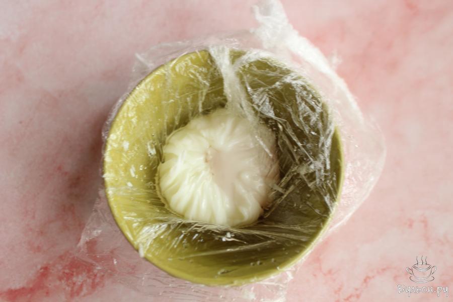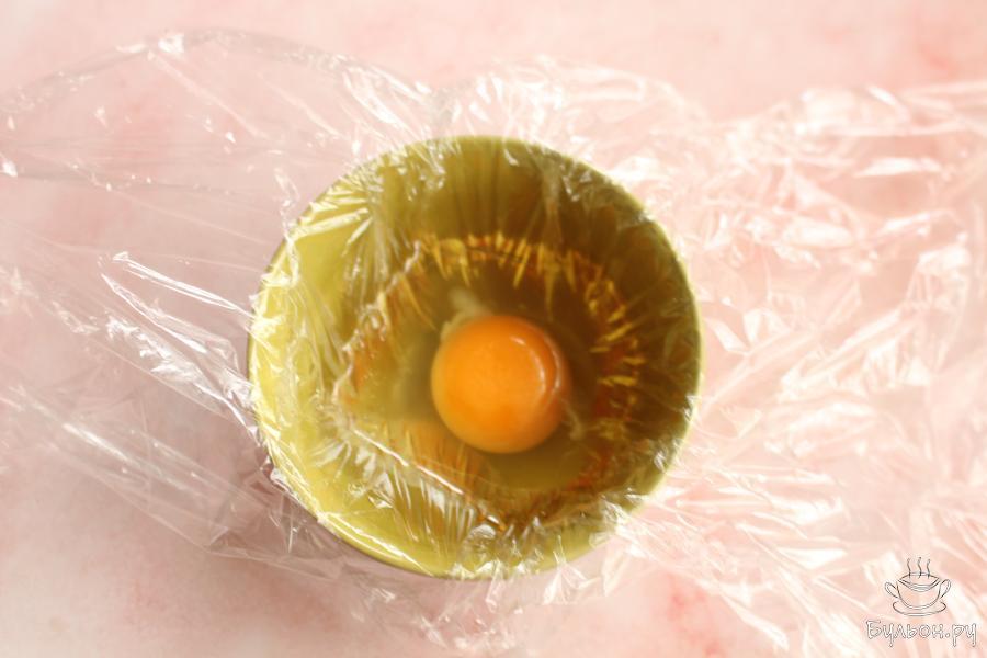4. В это время довести воду до кипения и опустить мешочек с яйцом в воду. Варить яйцо до нужной консистенции желтка, желток видно.