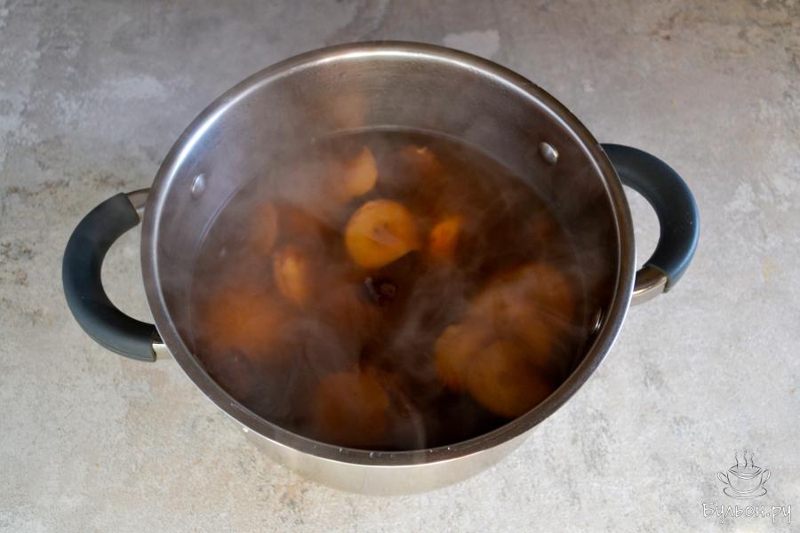 3. Влейте в кастрюлю воду и поставьте на огонь. После закипания сделайте огонь тихим и варите примерно 20-25 минут.