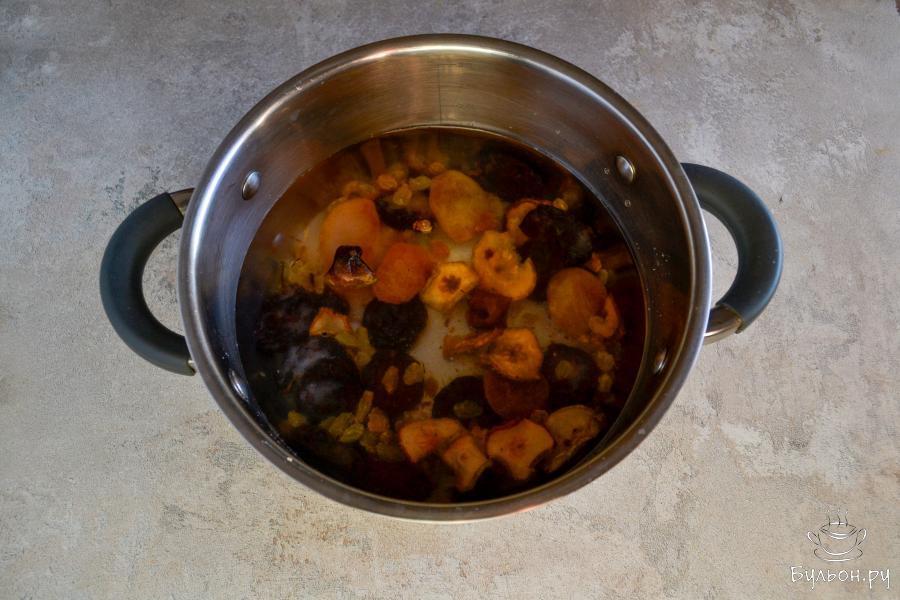 5. Перемешайте крахмал, тонкой струйкой влейте в кипящий отвар, при этом сразу перемешивайте, чтобы крахмал не заварился комочками. Помешивая, доведите до кипения, проварите на тихом огне 4-5 минут и снимайте кастрюлю с огня.