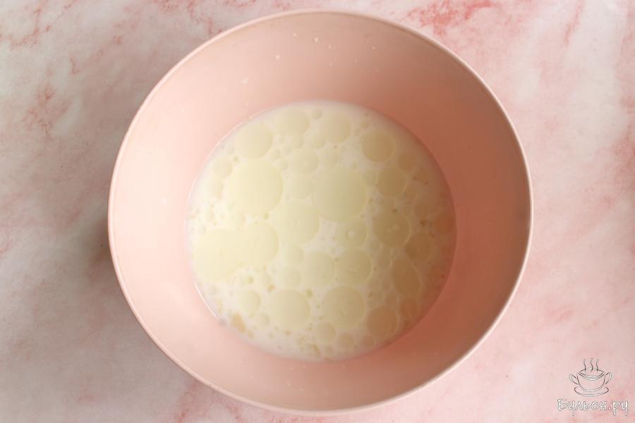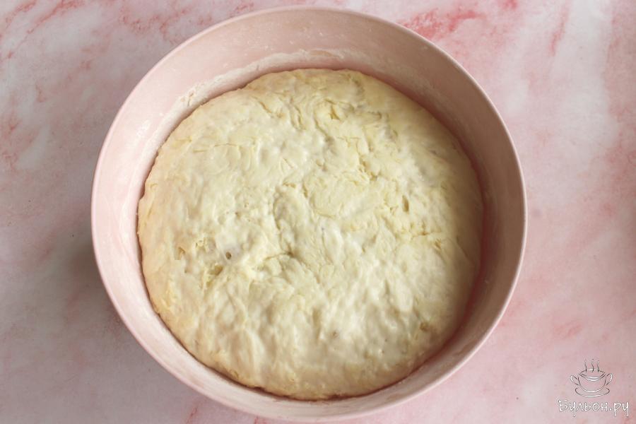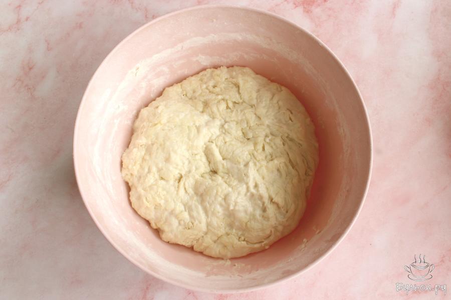 3. Добавить муку, замесить мягкое липковатое тесто. Собрать тесто в шар, смазать маслом. Посуду накрыть и убрать в тепло на час.