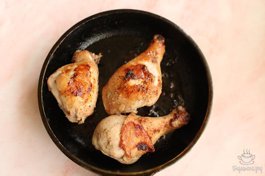 Жареные куриные голени - это одно из самых простых и быстрых блюд из курицы на ужин, которое можно приготовить из простых доступныхпродуктов. Во время жарки на сковороде кожица становится золотистой и хрустящей, а мясо внутри остается сочным. Чтобы вкус мяса получился насыщенным, голени заранее маринуют в выбранных специях и пряностях. Благодаря маринаду из горчицы и винного уксуса, голени получаются очень вкусные, душистые, легкие и аппетитные. Горчицу можно использовать обычную, а можно выбрать дижонскую. Попробуйте оба варианта. Вместо белого винного уксуса можно взять яблочный.