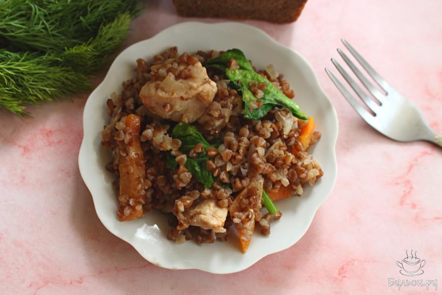 Гречка с куриной грудкой и шпинатом в казане - это простое и полезное блюдо, которое подходит для обеда или ужина на каждый день. Нежная куриная грудка хорошо сочетается с рассыпчатой гречкой, а свежий шпинат добавляет блюду легкость и интересный вкус. Такое сочетание продуктов делает блюдо сытным, но при этом не тяжелым для желудка. Готовить такое блюдо просто и быстро. Количество шпината и мяса можно увеличить. В такое блюдо можно добавить свои любимые пряности на выбор. Это блюдо напоминает гречку по-купечески, но в более диетическом варианте.