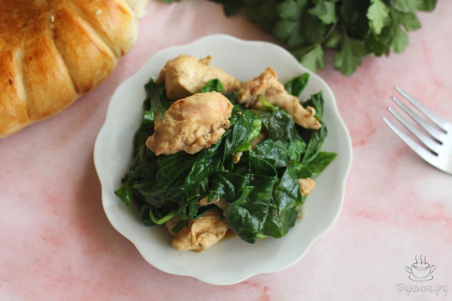 Шпинат с куриной грудкой и соевым соусом - простой и вкусный рецепт диетического блюда, которое решает вопрос, что можно приготовить на обед или ужин из куриного филе и шпината. Куриная грудка со шпинатом и соевым соусом готовится в казане или на сковороде, получается сочной, ароматной и низкокалорийной. Этот быстрый ПП рецепт подойдет тем, кто следит за питанием. Блюдо вкусное как в горячем, так и в холодном виде. Курицу со шпинатом можно употреблять как самостоятельное блюдо, или добавить к гарнир из риса или булгура. Для приготовления лучше использовать крупные листья шпината - они сохраняют структуру и вкус. Если вам хочется, то можно добавить сюда и другую ароматную зелень. По желанию можно добавить другую зелень и специи. Количество соевого соуса и соли регулируйте по вкусу - если соус достаточно соленый, то дополнительная соль не понадобится.