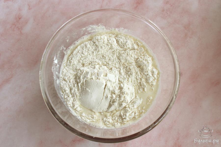5. Сковороду хорошо разогреть. Выливать на сковороду немного теста и распределить его по сковороде. Готовить блин до румяного низа.
