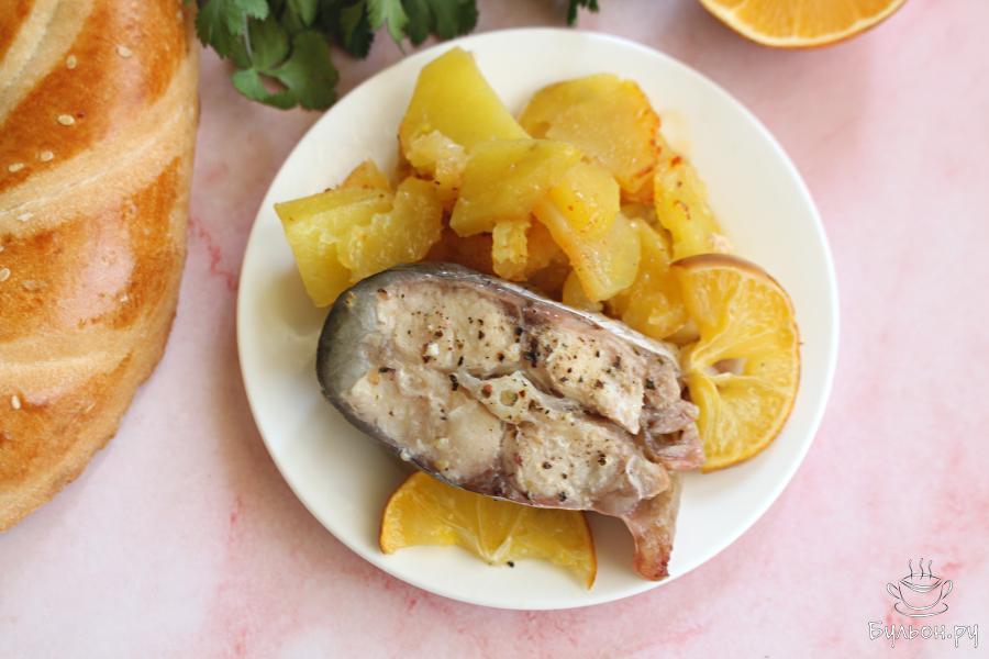 Картошка с пангасиусом под фольгой в духовке - вкусное блюдо, которое прекрасно подойдет и для праздничного и для семейного ужина. Рыба с картошкой готовится в одной форме, что делает процесс приготовления несложным - достаточно положить картошку, а затем и рыбные стейки в одну форму - и запечь под фольгой. Блюдо получается очень вкусное, картошка тут будет мягкая, пропитанная рыбным соком, а рыба мягкая и сочная. Лимон добавит блюду пикантный аромат. Перец лучше использовать свежемолотый, хорошо подходит смесь перца. Пангасиуса тут можно выложить стейками, использовать филе или даже запечь целую небольшую рыбу - в любом случае получится очень вкусно. Если вы запекаете целую рыбку, то дольки лимона можно вложить в рыбу и в таком случае запекать нужно минут на 10 дольше.